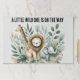 A minimalist design featuring watercolor safari baby animals and muted jungle foliage, accented with elegant text for a gender neutral baby shower or first birthday.
