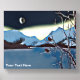 A somewhat stylized image of birds perched in a tree on a long, dark, cold winter night. Everything, the land and mountains, is covered in snow. A crescent moon hangs in the sky, the Northern Lights glow beyond the mountains. Customize by adding your own text.