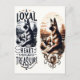 A digital illustration of a German Shepherd dog sitting on a bench in a park, surrounded by nature, with a heart-shaped design and the text A Loyal Hearts Treasure in a vintage style. The image is in two versions, one in black and white and one in color.