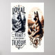A digital illustration of a German Shepherd dog sitting on a bench in a park, surrounded by nature, with a heart-shaped design and the text A Loyal Hearts Treasure in a vintage style. The image is in two versions, one in black and white and one in color.