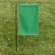 A lush green backdrop with a clean white square po garden flag