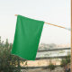 A lush green backdrop with a clean white square po house flag