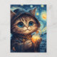 AI generated art of a magical cat in the starry night in the style of Van Gogh