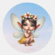 A magical little fairy crouching down classic round sticker