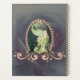 A majestic peacock in gold and green. The peacock captivates with its magnificent, detailed feathers, adorned with decorative flourishes and intricate embellishments. Its majestic poise is underscored by the artful design of the feathers, which shine in a harmonious interplay of gold accents and rich green. The peacock is surrounded by an oval frame reminiscent of twisted rope. This frame is artfully designed and decorated with small, delicate leaves, giving it a natural yet elegant character.