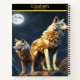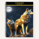 A majestic wolf howls under the moonlit sky notebook