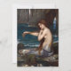 A Mermaid (1900) by John William Waterhouse is a mesmerizing Pre-Raphaelite depiction of a mermaid seated on a rocky shore, combing her long, flowing hair. The painting captures an ethereal, melancholic mood, with the mermaid gazing wistfully at the water, caught between the sea and the world beyond. Waterhouse’s delicate brushstrokes bring out intricate details in her shimmering scales, cascading auburn hair, and the surrounding ocean waves. The scene evokes a sense of longing, mystery, and enchantment, common themes in his mythological and literary-inspired works.