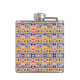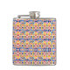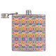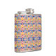 A metal flask with a vibrant geometric pattern