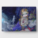 Might be my favourite painting I've ever done - "A Midsummer Night's Dream" - certainly one of my largest and most complex. Inspired of course by Shakespeare's "A Midsummer Night's Dream" - one of my favourite plays! Queen Titania is featured most prominently, her jealous king Oberon has convinced Puck (depicted here as a classical Cupid-like figure based a little bit off my nephew Fox) to use a love-potion made from magical violets to cause Titania to fall in love with actor Nick Bottom (who has just been magically given the head of a Donkey). Follow all that? All the other faeries are out in this Midsummer's Night forest scene - a procession leading into the twilight as the faeries turn into luminous moths. You can seven see a mermaid and a classical dolphin-fish as a nod to the whole Oberon/dolphin/mermaid reference. A lot of classical references hiding in this piece, actually! The magical glowing lights really do almost look like they're glowing, but no - this is a hand painted piece with no lighting effects, hehe, done the old fashioned way - an original acrylic painting on wood.