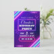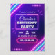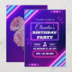 A unique invitation for a birthday celebration in a bold, modern style, adorned with vibrant purple colors and touches of bright neon lighting. The design features elegant geometric lines and innovative shapes, creating a festive and lively atmosphere.