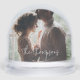 A beautiful gift for newlyweds, this snow globe provides the option for front and back photos. Customize the globe by adding the name of the couple, while the back provides a date and special quote for their special day.