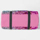 A Print, Cut, Sew, Bag, (Pink Large Duffel Bag), with a Picture, of a Beautiful Monarch Butterfly, = (Miami Filter), laying on the grass, on it.