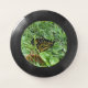A Wham-O Fisbie ,color Black, with a Beautiful Picture, of a Monarch Butterfly laying in the grass on it