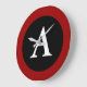Modern monogram initial A red, black & white wall clock. Initial is fully customizable. Red background color can be changed to match your decor. Design by WebzPickz.