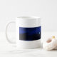 Monogrammed Mug with A + blue abstract image (light in the night). You can easily change monogram (font, color, size and position) by clicking the customize button. Perfect for Father's Day or birthday.