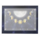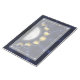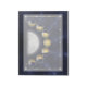 This sparkling design illustrates the lunar cycle in bright gold and deep blue. The jewels representing the moon phases run in a semi-circle from waxing crescent, to first quarter, waxing gibbous, full moon, waning gibbous, last quarter, and ending on a waning crescent. They are set against a fractal backdrop like the starry sky, with a silvery glowing moon photo from NASA to complete the piece.
