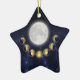 This sparkling design illustrates the lunar cycle in bright gold and deep blue. The jewels representing the moon phases run in a semi-circle from waxing crescent, to first quarter, waxing gibbous, full moon, waning gibbous, last quarter, and ending on a waning crescent. They are set against a fractal backdrop like the starry sky, with a silvery glowing moon photo from NASA to complete the piece.