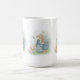 A mother rabbit with a baby rabbit in a clearing w coffee mug