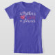 The shirt in purple looks great on my daughter but it is a narrow fit. The length fits a bit long but I like it. The material is good quality. The print looked great against the purple shirt. Nice, bold and bright.
