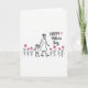 This card features a minimal black line drawing on a wide white background, focusing on a motherly figure in profile with her hair in a neat updo walking hand-in-hand with a smaller companion with tousled hair. Their slight lean toward each other and easy, unhurried steps suggest closeness and trust, like a quiet shared walk ❤️. Along the bottom runs a simple row of flowers with bright pink petals and dark centers, connected by thin black stems and sprinkled with small dark dots like confetti on the ground. In the upper right area, a short Mother’s Day message sits in smooth, flowing lettering, spaced with plenty of white room around it. The words are in black, and a small pink heart appears nearby, matching the pink in the flowers 🌼. The open background keeps attention on their clasped hands and the gentle, affectionate mood created by their relaxed posture. The floral border stretches horizontally beneath their feet, with repeating pink blooms and dark centers against the white space.