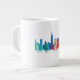 A mug for coffee/tea with a painting design of the New York city skyline in many colors