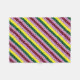 The design displays a captivating pattern of diagonal stripes. These stripes alternate between vibrant red, sunny yellow, and fresh green. Each stripe maintains an equal width and is evenly spaced across the image. Within each colored stripe, there are small white dots, creating a delightful dotted line effect. Overall, this simple yet engaging design could be relevant for graphic design discussions or as a decorative background.