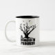 A group of crows starting to gather at an old tree with a full moon in the sky. The caption below the tree reads "A murder in progress"