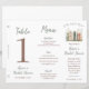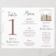 Add a more personal touch to your events with this trifold table sign! This sign features three sides: a table number, a menu, and a space for a special thank you message. Simply fold this letter sized sheet of paper at the lines provided and glue together to form a standing triangular table sign. The text is fully customizable!