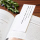 Simple, stylish mini bookmark in an a modern minimalist design style with custom quote “A new Chapter Begins...”. The perfect promotional giveaway or swag for a book store or from a authors/writers.