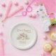Gender neutral storybook baby shower paper plates with vintage books and botanical watercolor design create an elegant and cohesive table setting for a “New Chapter Begins” celebration. Featuring soft muted sage and warm neutral tones, this literary baby shower plate design showcases a charming stack of classic books topped with a sweet baby accent, surrounded by delicate greenery and airy florals for a timeless woodland inspired look. The refined serif and graceful script typography blend beautifully with the subtle earthy color palette, making these gender neutral baby shower party plates perfect for book themed baby showers, rustic garden celebrations, or classic storybook baby shower décor. The soft neutral background allows the watercolor illustration and sage lettering to stand out while maintaining a sophisticated, minimalist aesthetic that coordinates seamlessly with matching invitations and stationery. Ideal for parents planning a neutral baby shower theme, these custom baby shower paper plates add a thoughtful literary touch to dessert tables, cake displays, and place settings. With elegant botanical accents and a sentimental book motif, this neutral storybook baby shower plate design brings warmth, charm, and cohesive style to your baby shower party décor.