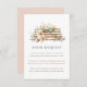 Elegant "Book Request" enclosure card for baby shower invitations includes a stack of beautiful vintage hardcover books adorned with pastel pink and blush flowers and a sweet little teddy bear. Personalize the golden bronze and rich green custom text to request that guests bring a children's book to create a library for baby in lieu of a traditional card.