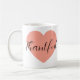 This a mug and with a heart with the saying thankful.