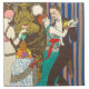 A Night in Decadent Paris napkins. Art Deco print from 1914. French artist Georges Barbier was one of the great illustrators working in Paris France in the 1920s. He frequently depicted scenes of Parisian nightlife. A night in decadent Paris features a French couple dancing at a party. The woman wears an elegant blue dress with red sash and a large feather head piece, while the gentleman wears a tuxedo and mustache. Behind them a woman lifts a glass of cherries beside a table of pineapples, plums, oranges and figs. A pretty gift for fans of art deco, vintage paris, retro art, and the roaring twenties.