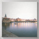 A winters night view of the twilight night lights dancing on the river in Prague, Czech Republic from the Charles Bridge Dumlao Design Studio original.