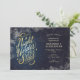 A Night Under the Stars Horizontal Invitation featuring elegant handlettered typography of “A Night Under the Stars”. This design includes elements of dark blue, gold and a starry night background. Includes a template for personal customization.
