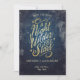 A Night Under the Stars Save The Date Flat Card featuring elegant handlettered typography of “A Night Under the Stars”. This design includes elements of dark blue, gold and a starry night background. Includes a template for personal customization.