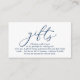 Celebrate the beginning of your journey together with our elegantly navy blue crafted "gifts" wedding invitation enclosed card. Featuring a sophisticated blend of modern script and romantic allure, each card is meticulously designed to convey the essence of your special day. Perfectly suited for couples seeking a unique way to share their honeymoon dreams, this card invites your loved ones to contribute towards unforgettable experiences. Whether nestled in a luxurious envelope or presented alongside your wedding invitations, our card adds a touch of enchantment to your celebration, promising cherished memories that last a lifetime. Designed by TeeshaDerrick.