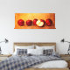 A panoramic still life of a row of five red apples and an apple half. A beautiful canvas print to decorate your home, office wall, or a public place. You can transfer this design to a variety of other products of your choice, large or small, including low-price prints. Please, use the "Edit Design" button to adjust the picture to the shape of the particular product. It will transfer you to the Designer Tool. Use Fit/Fill option (right-side menu of the Designer Tool). You can scale, rotate, flip the image on the product template and even add some text to it. Just be creative, have fun, buy one, and be happy!