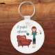 Cute as can be keychain with a woman enjoying her afternoon as she really likes it...a good book, a cozy chair and a warm cup of tea.
