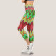 A person is wearing vibrant, geometric-patterned capri leggings