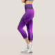 A person wearing purple geometric-patterned leggings and white sneakers stands against a plain background, highlighting the vibrant, modern design.