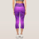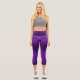 A person wearing purple geometric-patterned capri leggings