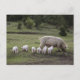 A pig with piglets in a field postcard