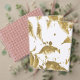 The design appears to be a repeating pattern consisting of a pink and white color scheme. The pattern features an array of abstract shapes that resemble paisley designs, commonly found in textiles. Each individual shape is pink with a white outline and contains smaller white decorative elements inside. These shapes are arranged in a diagonal orientation, creating rows that alternate direction, which adds to the visual interest of the pattern. This type of design is often used in fabrics or wallpapers and is interesting due to its intricate details and the way the shapes interlock to form a continuous, flowing design.