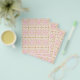 The design features a repeating pattern with floral and geometric elements. The main components include stylized flowers with eight petals, circular shapes that resemble smaller flowers or dots, and interconnected looping lines forming a lattice-like structure. The color scheme includes shades of pink, white, and brown on a beige background. This symmetrical and harmonious design is ideal for decorative purposes such as wallpaper or textiles.