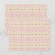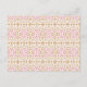 The design features a repeating pattern with floral and geometric elements. The main components include stylized flowers with eight petals, circular shapes that resemble smaller flowers or dots, and interconnected looping lines forming a lattice-like structure. The color scheme includes shades of pink, white, and brown on a beige background. This symmetrical and harmonious design is ideal for decorative purposes such as wallpaper or textiles.