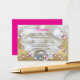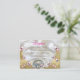 It features a pink and white marble finish background with brushed gold accents and is adorned with lustrous white silk, pearls, and gold lace. We have various products for you to customize for any special occasion.