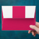 a pink background with a white border envelope