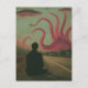 A pink octopus and UFOs surreal AI generated art Postcard