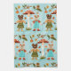 A playful fabric pattern featuring cartoon animals kitchen towel